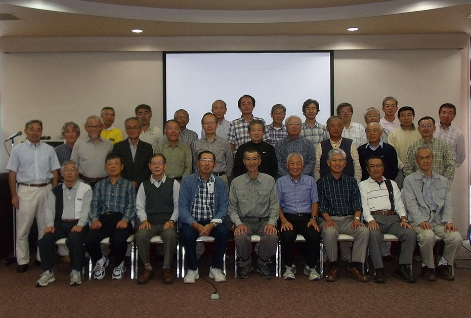 2015年第2回の研修会が、赤城クラブで開催されました。講師にはルネサスOBの佐々山厚氏をお迎えし、氏のライフワークとも言える自転車を使った世界旅の中から、中央アジアの旅を話して頂きました。 倶楽部会員外のルネサスOBの方も参加し30人を超える盛況で、自転車で世界を回る勇気をたたえる声が多く聞かれました。写真は講演の合間に撮影した、佐々山さんを囲む中山理事長他参加者の皆さんです。