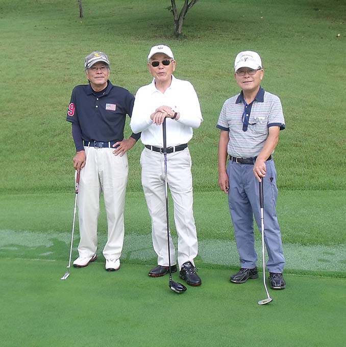 ●予選は1位タイで通り、決勝に臨みましたが、3ホール目でサンドウェッジがトップしてグリーンオーバーし、木の下で結局トリプルボギーをたたきました。後24ホールあるのに万事休すかと、少し弱気になりましたが、力まないでやることに徹しました。当日、ラフが大変深く厳しいコンディションで、小生より実力が上の人も、ラフから無理をして思わぬ苦戦を強いられ、棚ぼた式に扉が開けた感じです。パターがスコアメイクの生命線なので、バーディチャンスは1メートルオーバーを覚悟し意識して臨みました。