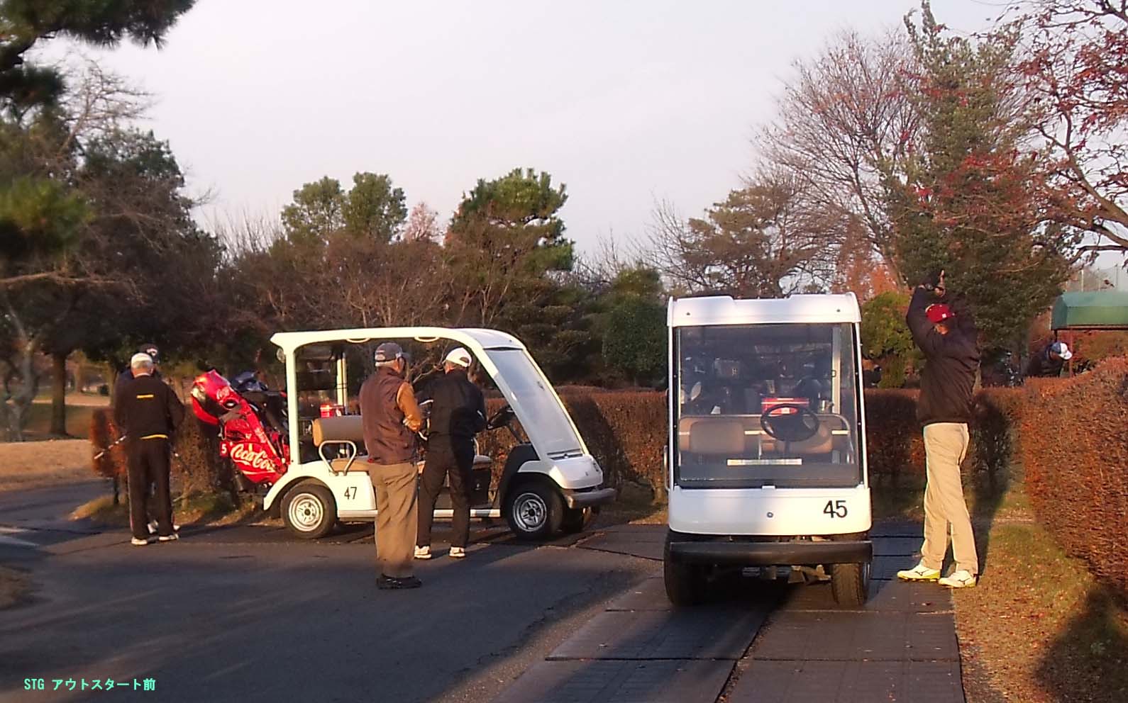 甘楽CCアウトコースのスタートホール、アウト2組の皆さん。